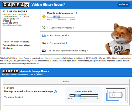 information for each vehicle listed for sale here on this site. However,